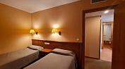Quad rooms at SOMMOS Hotel Benasque Spa have 2 double bedrooms . These are connected by a hallway and have a large shared bathroom (with shower or bathtub).